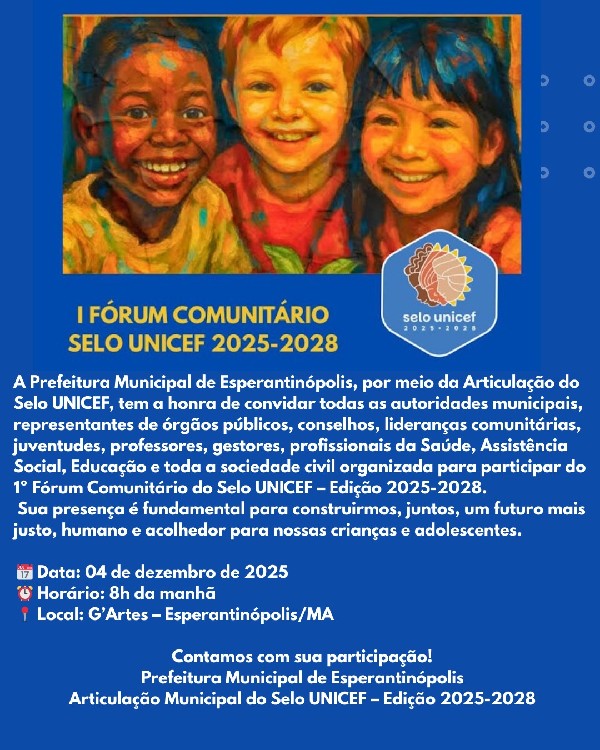 I FÓRUM COMUNITÁRIO SELO UNICEF 2025- 2028.