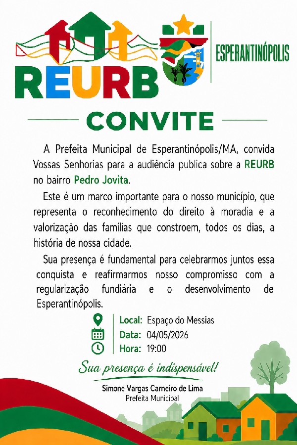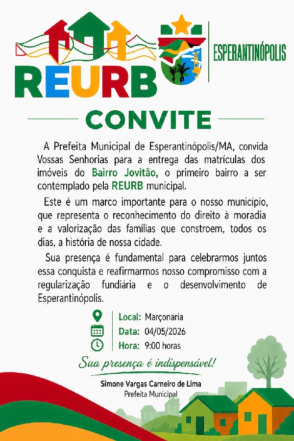 30-04-2026ENTREGA DAS MATRÍCULAS DOS IMOVÉIS DO BAIRRO JOVITÃO, O PRIMEIRO BAIRRO A SER CONTEMPLADO PELA REURB MUNICIPAL.